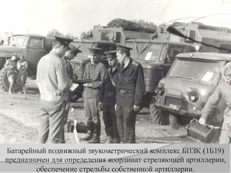 Слайд 18Батарейный подвижный звукометрический комплекс БПЗК (1Б19) предназначен для определения координат