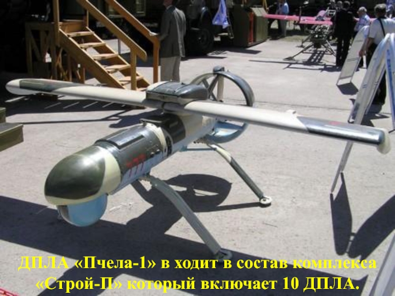 Слайд 27ДПЛА «Пчела-1» в ходит в состав комплекса «Строй-П» который включает