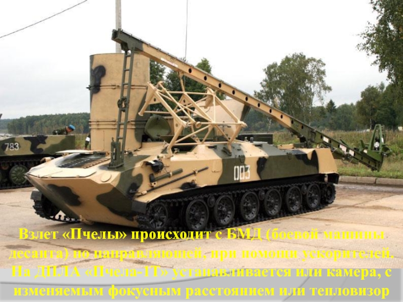 Слайд 29Взлет «Пчелы» происходит с БМД (боевой машины десанта) по направляющей,