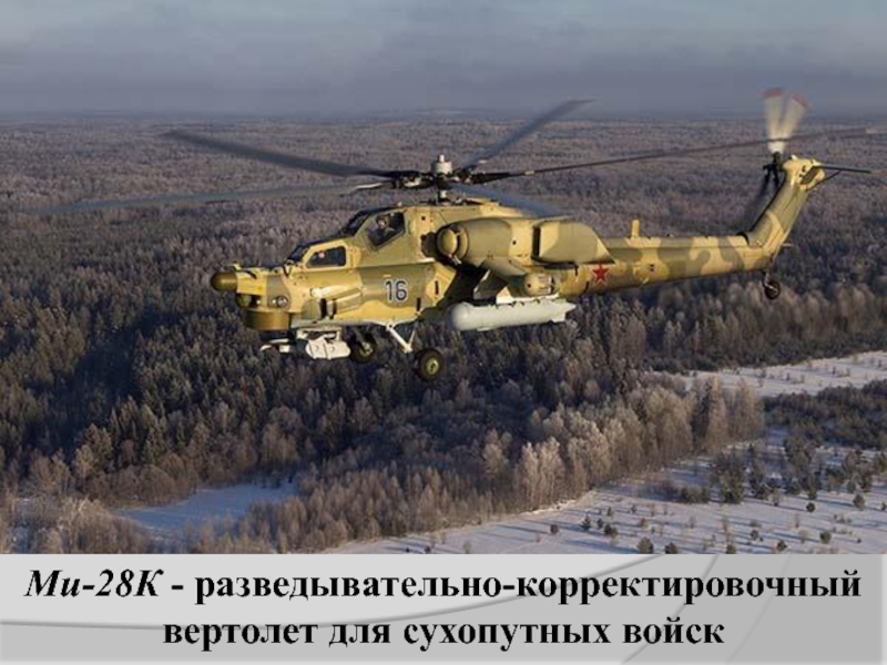 Слайд 25Ми-28К - разведывательно-корректировочный вертолет для сухопутных войск