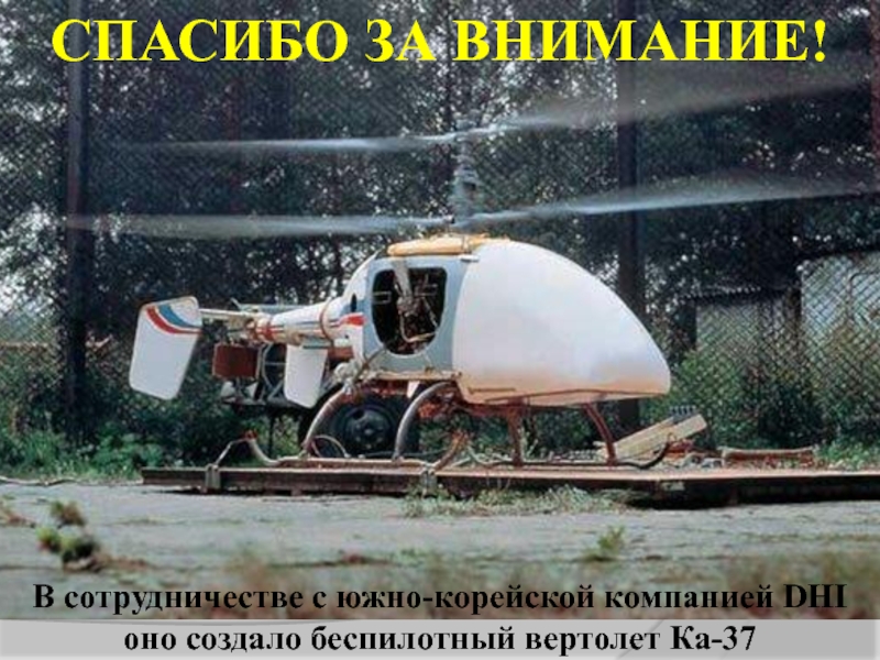 Слайд 31В сотрудничестве с южно-корейской компанией DHI оно создало беспилотный вертолет