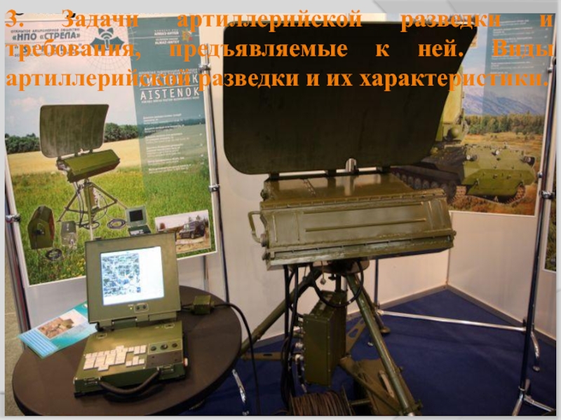 Слайд 93. Задачи артиллерийской разведки и требования, предъявляемые к ней. Виды