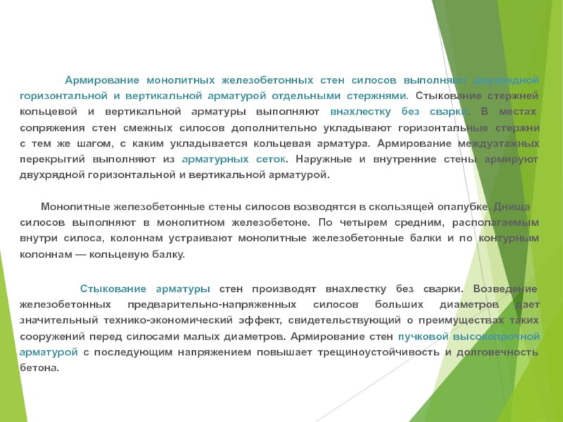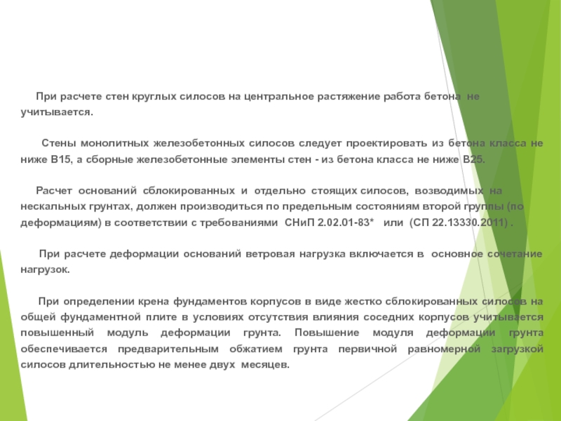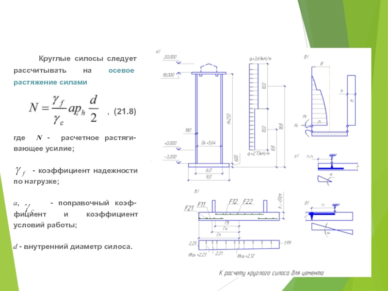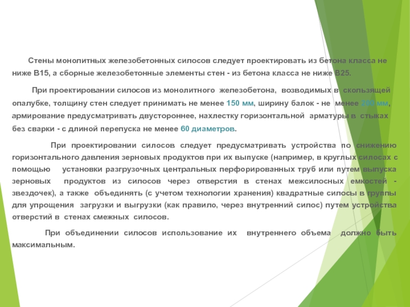 Слайд 8 Стены монолитных железобетонных силосов следует проектировать из