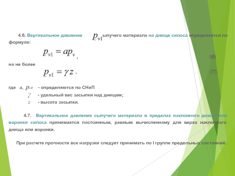 Слайд 16 4.5. Вертикальное давление сыпучего материала , передающееся на
