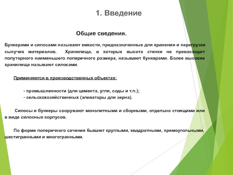не превосходит полуторного наименьшего поперечного размера, называют бункерами. Более высокие хранилища называют силосами.