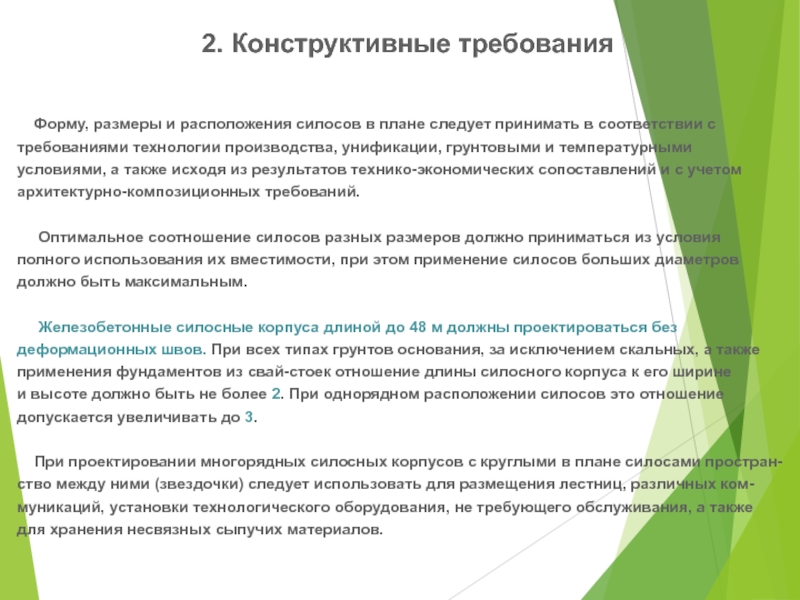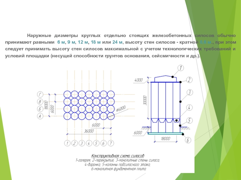 Слайд 7 Форму, размеры и расположения силосов в плане следует