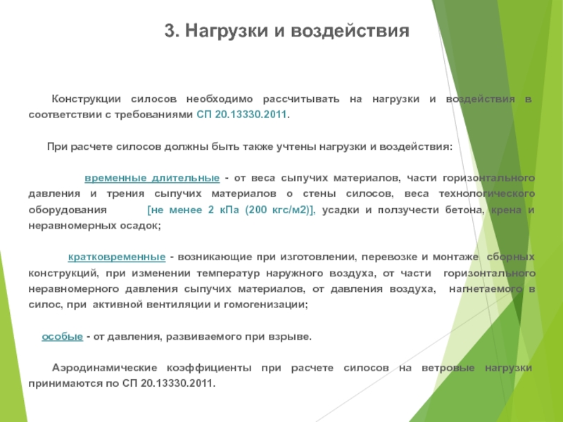 При расчете силосов должны быть также учтены нагрузки и воздействия:
