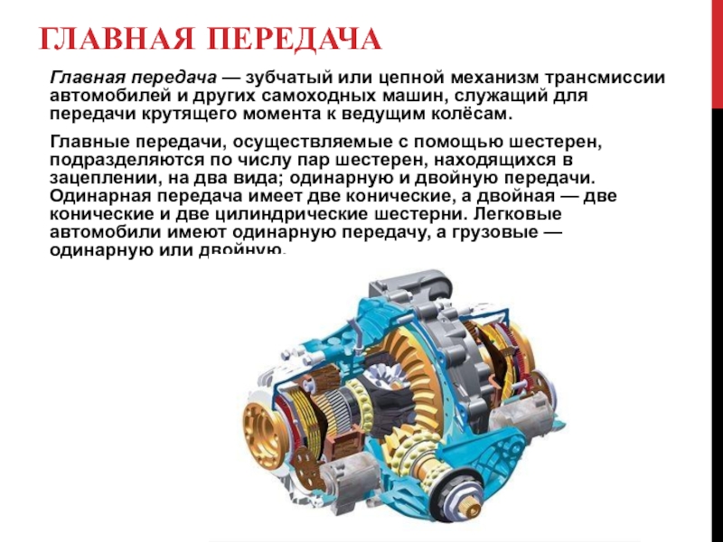 Главная передача — зубчатый или цепной механизм трансмиссии автомобилей