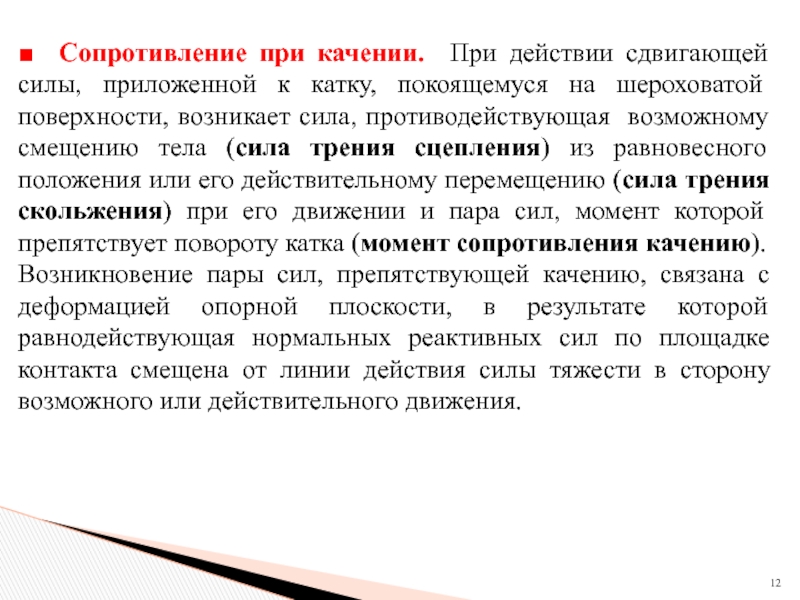 сдвигающей силы T на опорной поверхности ее поворотом относительно нормали к плоскости