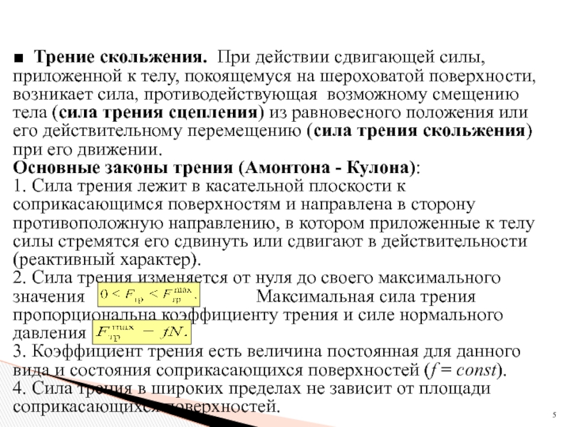 где (греческая буква, читается «мю») – коэффициент пропорциональности, называемый коэффициентом трения.