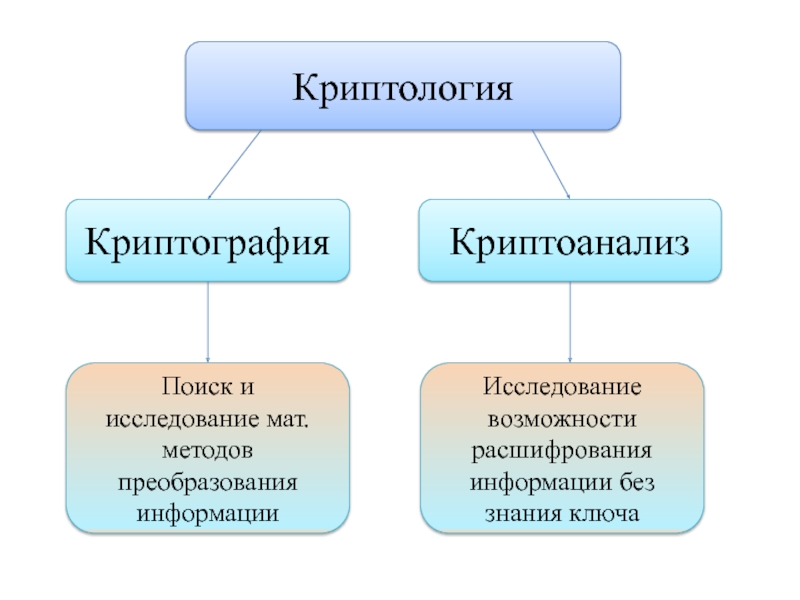 КриптологияКриптографияКриптоанализПоиск и исследование мат. методов преобразования информацииИсследование возможности расшифрования информации без знания ключа