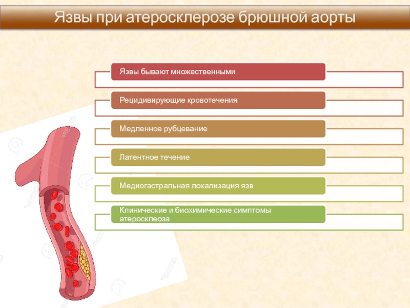 Слайд 17Язвы при атеросклерозе брюшной аорты