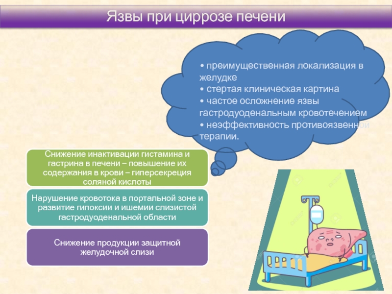 В патогенезе этих язв имеет значение уменьшение разрушения в почках гастрина и повреждающее влияние на слизистую оболочку желудка уремических токсических веществ.
