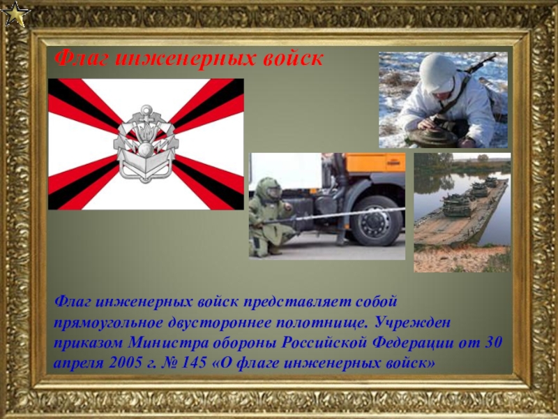собой прямоугольное двухстороннее полотнище. Учрежден приказом Министра обороны Российской Федерации