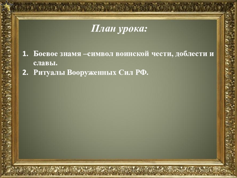 Знамя – символ воинской чести, доблести и славы, оно является напоминанием каждому солдату, сержанту, офицеру и генералу об их священном долге преданно служить Родине, защищать ее мужественно и умело, отстаивать от врага каждую пядь родной земли, не щадя своей крови и самой жизни.