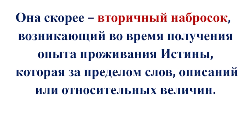 Слайд 57Она скорее – вторичный набросок, возникающий во время получения опыта