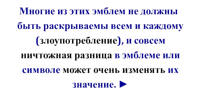 Слайд 27Многие из этих эмблем не должны быть раскрываемы всем и