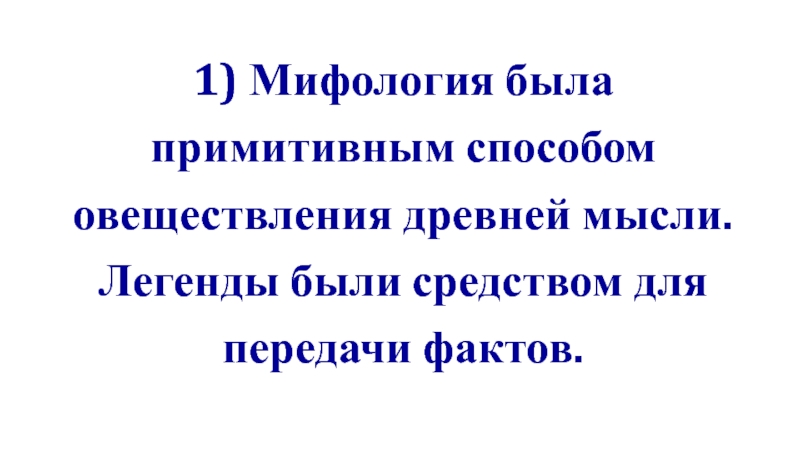 Слайд 61) Мифология была примитивным способом овеществления древней мысли.