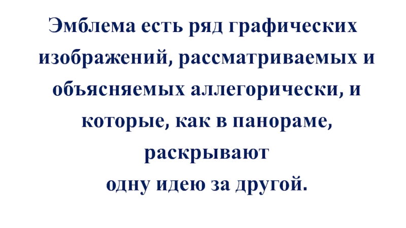 Слайд 32Эмблема есть ряд графических изображений, рассматриваемых и объясняемых аллегорически, и