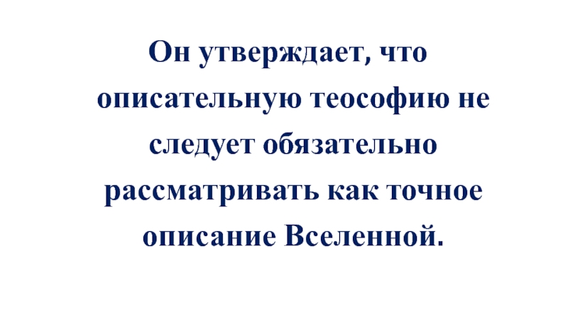 Слайд 56Он утверждает, что описательную теософию не следует обязательно рассматривать как
