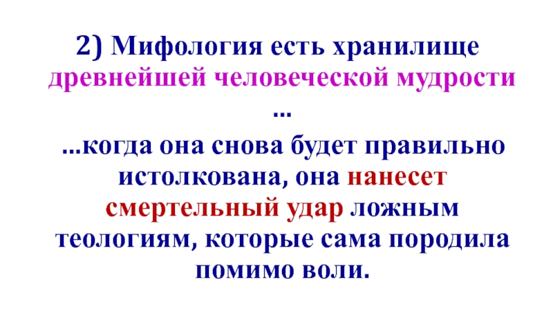 Слайд 72) Мифология есть хранилище древнейшей человеческой мудрости ...