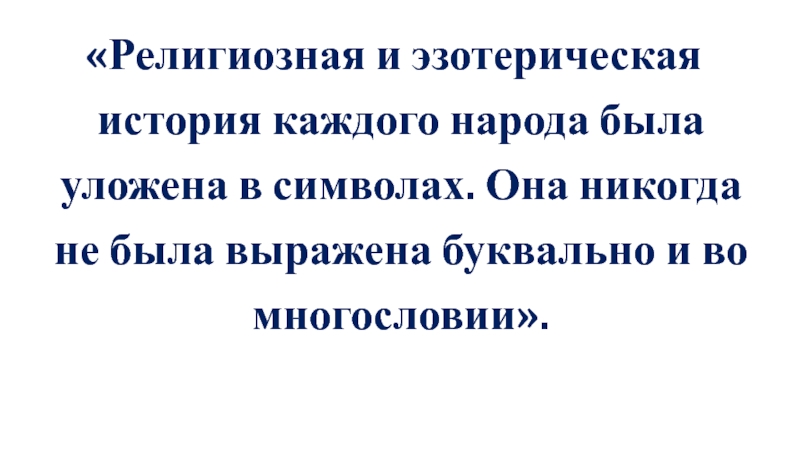 Слайд 15«Религиозная и эзотерическая история каждого народа была уложена в символах.