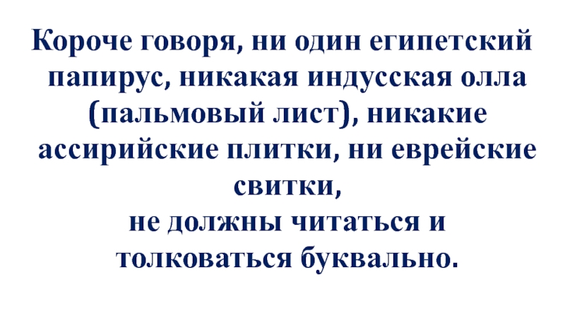 Слайд 36Короче говоря, ни один египетский папирус, никакая индусская олла (пальмовый