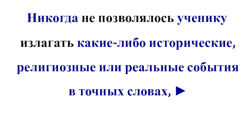 Слайд 23 Никогда не позволялось ученику излагать какие-либо исторические, религиозные или