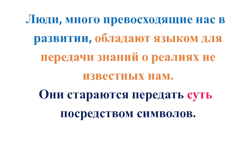 Слайд 53Люди, много превосходящие нас в развитии, обладают языком для передачи