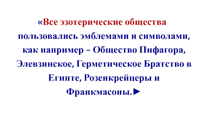 Слайд 26«Все эзотерические общества пользовались эмблемами и символами, как например –