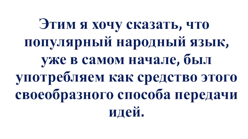 Слайд 44Этим я хочу сказать, что популярный народный язык, уже в