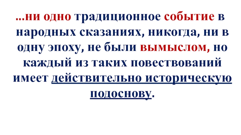 Слайд 3...ни одно традиционное событие в народных сказаниях, никогда, ни в