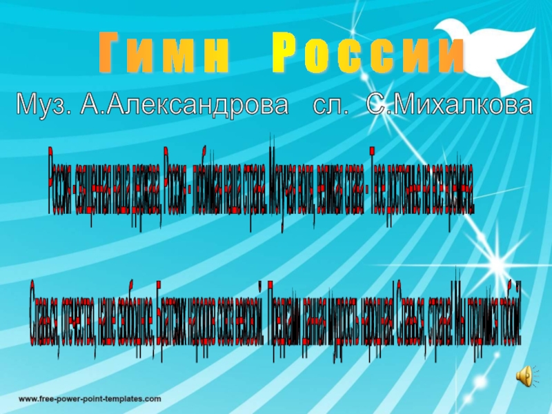Славься, отечество, наше свободное, Братских народов союз вековой. Предками данная мудрость народная! Славься, страна! Мы гордимся тобой!
