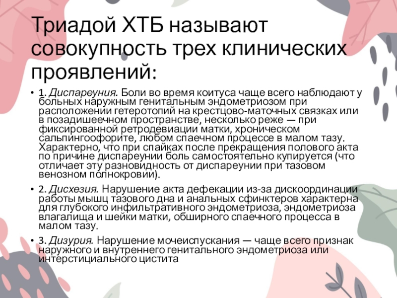 Слайд 14Триадой ХТБ называют совокупность трех клинических проявлений: