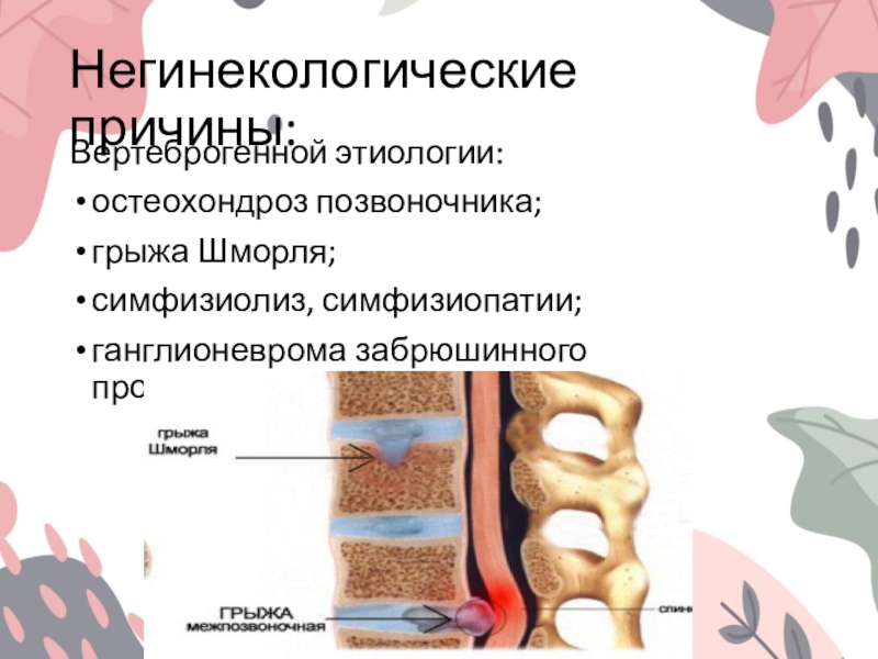 Слайд 8Основные гинекологические причины тазовой боли у женщин: