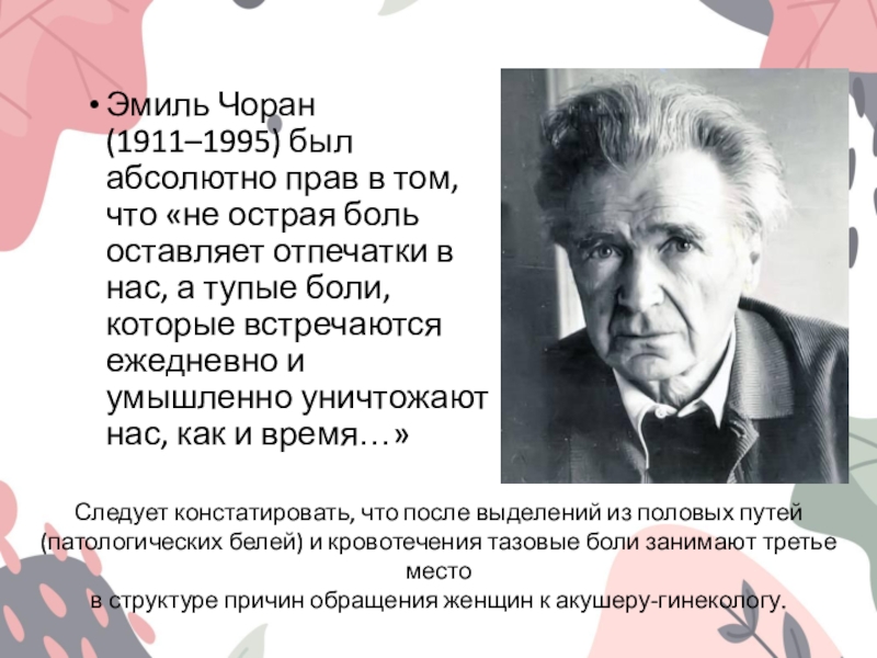 Слайд 2Эмиль Чоран (1911–1995) был абсолютно прав в том, что «не