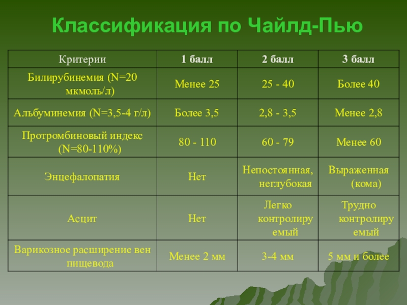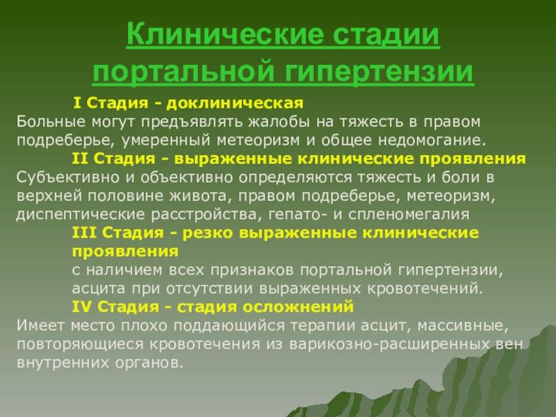с наличием всех признаков портальной гипертензии, асцита при отсутствии выраженных кровотечений.