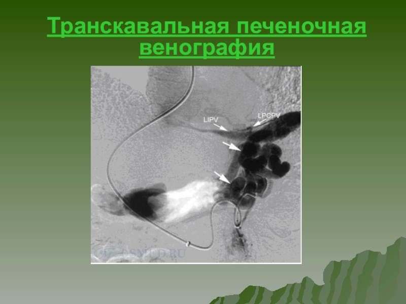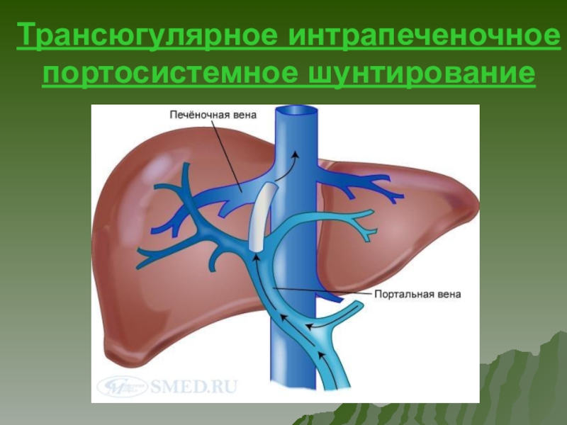 Слайд 48Трансюгулярное интрапеченочное портосистемное шунтирование