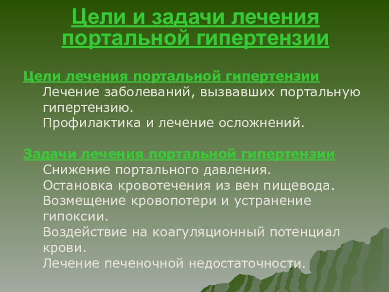 Слайд 45Цели и задачи лечения портальной гипертензии