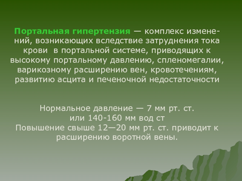 Повышение свыше 12—20 мм рт. ст. приводит к расширению воротной вены.