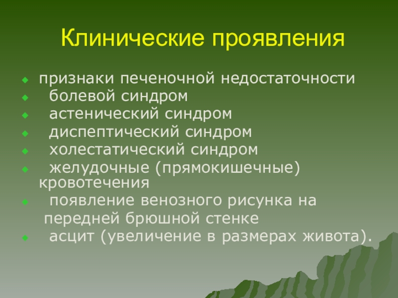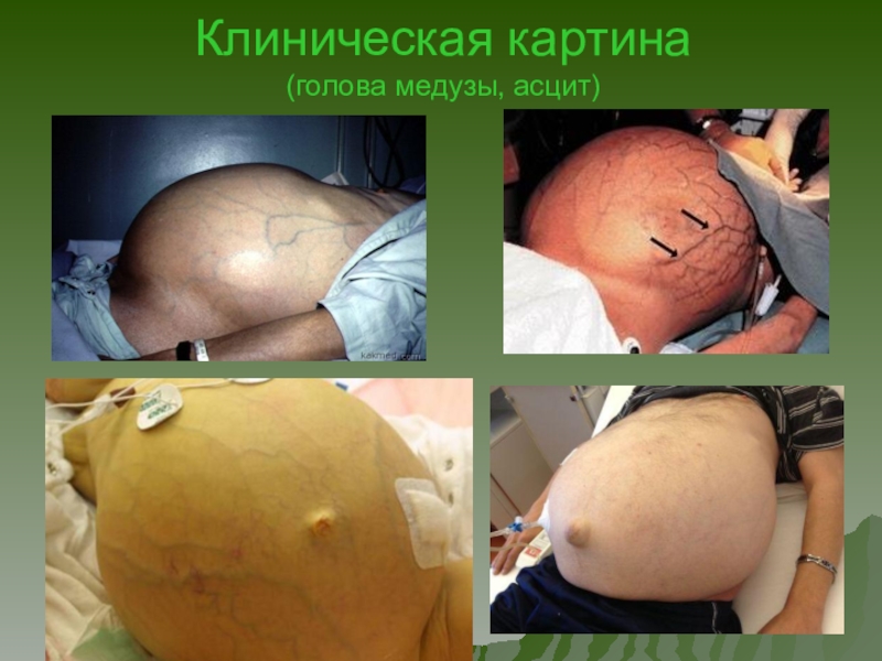 Имеет место плохо поддающийся терапии асцит, массивные, повторяющиеся кровотечения из варикозно-расширенных вен внутренних органов.