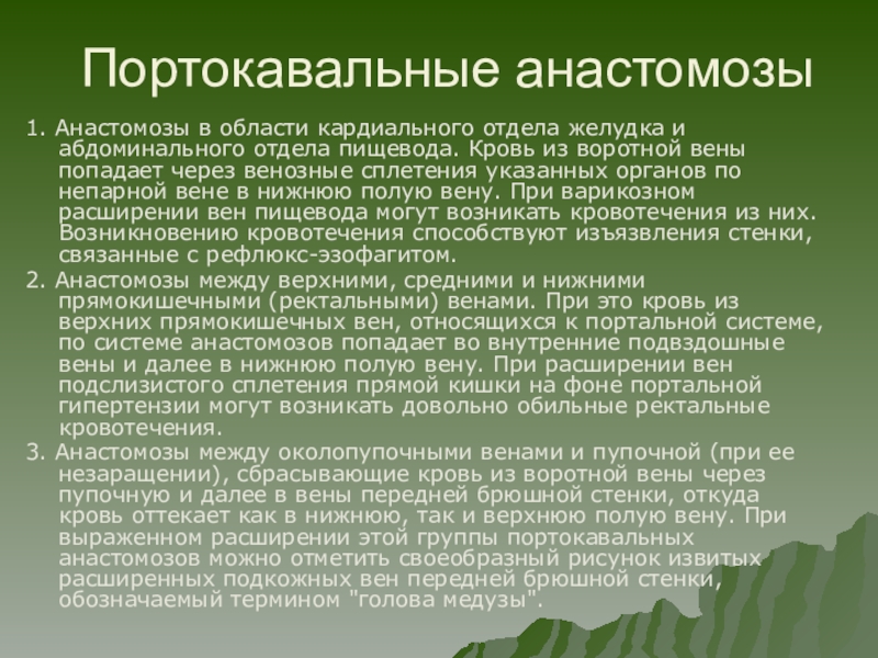 абдоминального отдела пищевода. Кровь из воротной вены попадает через венозные