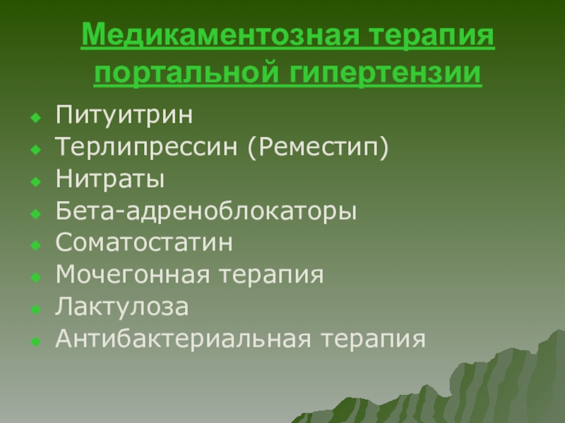 Слайд 46Медикаментозная терапия портальной гипертензии