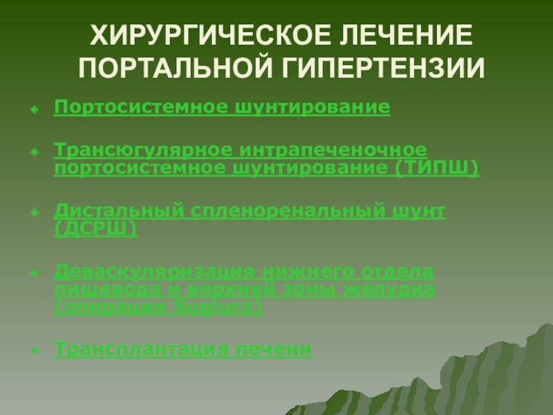 Слайд 50ХИРУРГИЧЕСКОЕ ЛЕЧЕНИЕ ПОРТАЛЬНОЙ ГИПЕРТЕНЗИИ