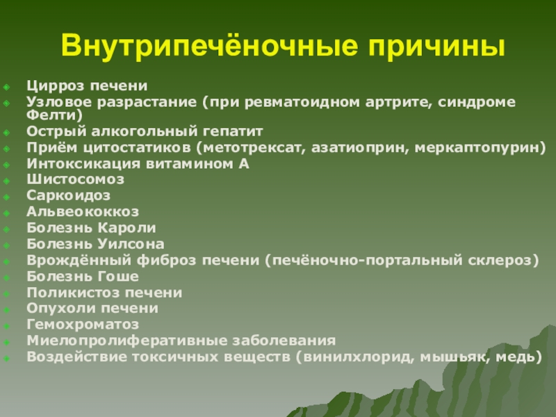 Слайд 6ПРЕДПЕЧЕНОЧНЫЕ ПРИЧИНЫ