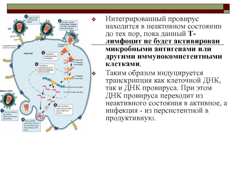 Слайд 9Интегрированный провирус находится в неактивном состоянии до тех пор, пока