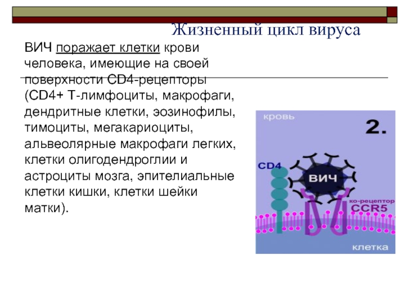 клетки: белок gp120 ВИЧ взаимодействует с CD4-рецептором и CCR5/CXCR4-корецептором;