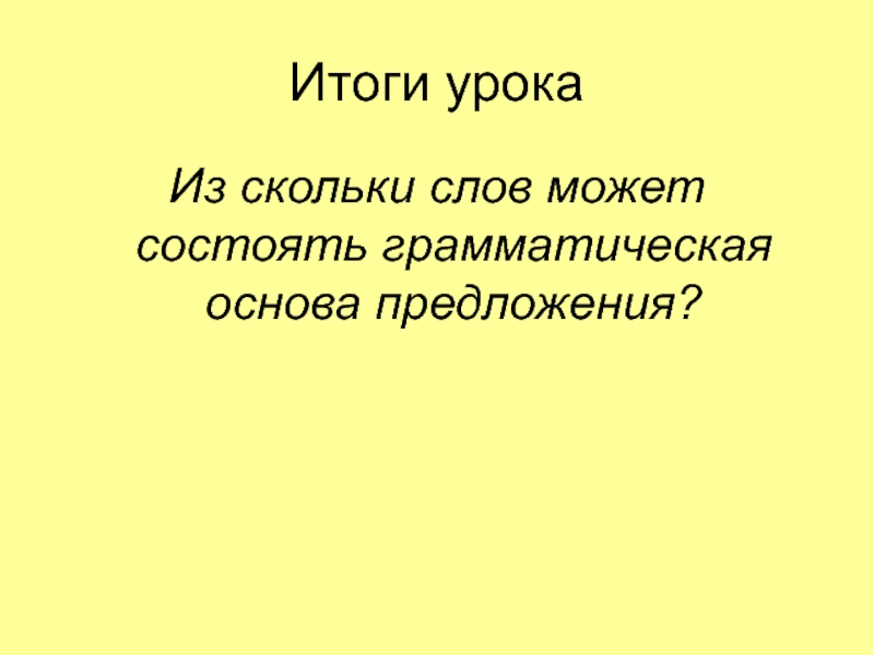 Итоги урокаИз скольки слов может состоять грамматическая основа предложения?