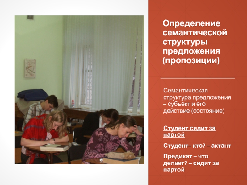 Слайд 18Определение семантической структуры предложения (пропозиции)