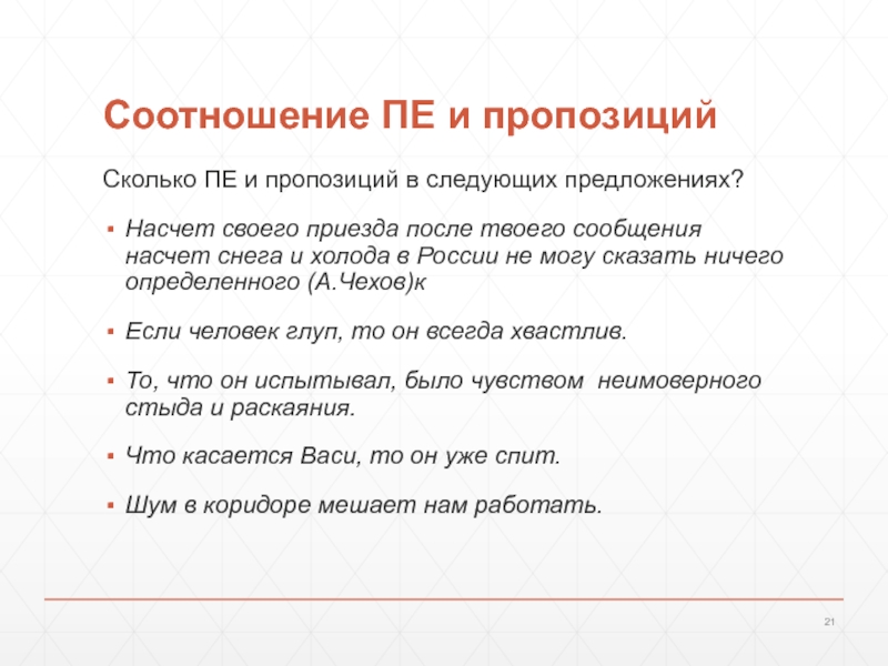 Сколько ПЕ и пропозиций в следующих предложениях?